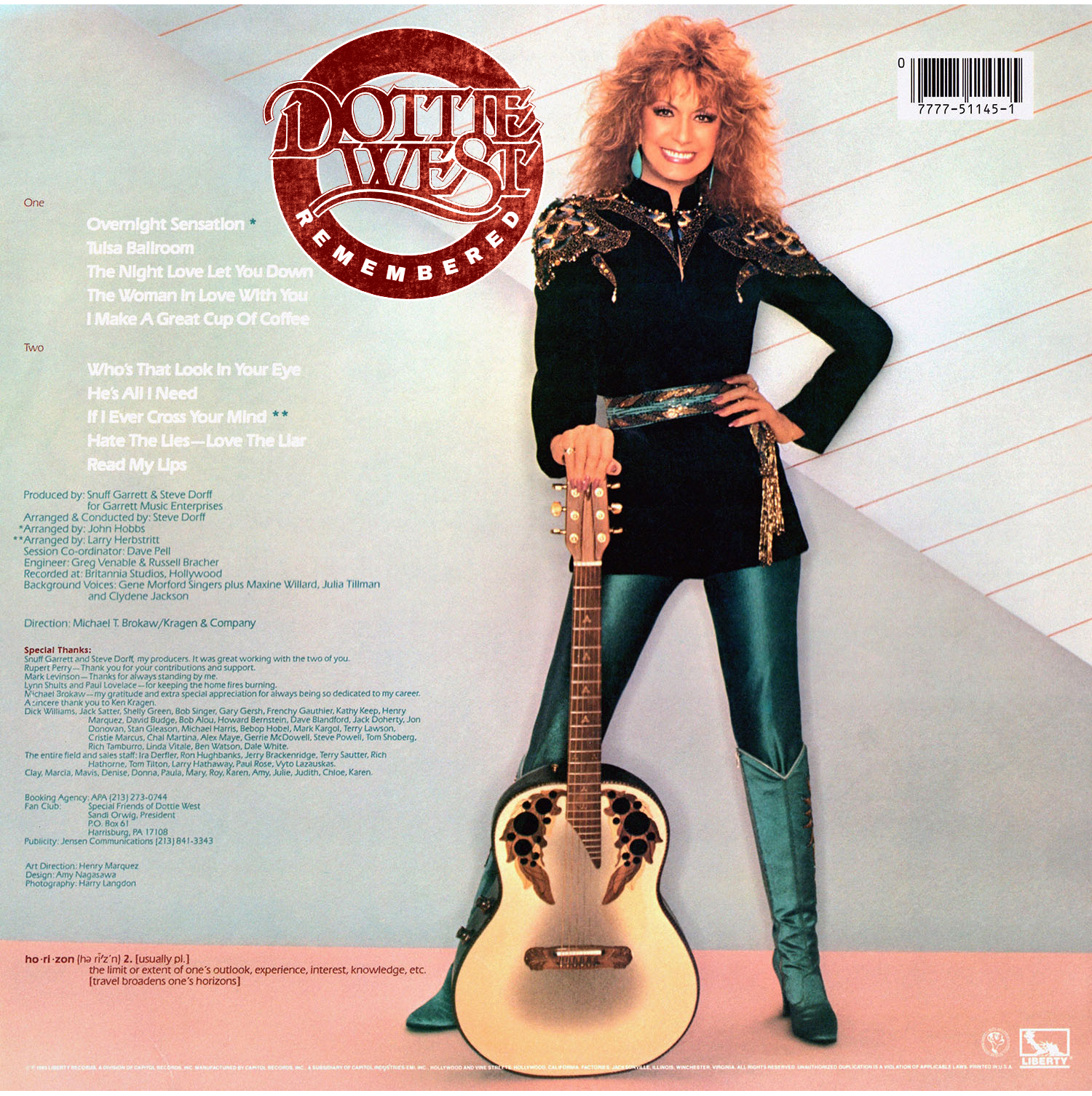 The Woman In Love With You and If I Ever Cross Your Mind are good, solid, simple love ballads; Garrett and Dorff do seem to know when to ease off the orchestrated overdrive and let Dottie’s voice come front and center. He’s All I Need is a basically country ballad about finding a romantic replacement (“He’s not all you were/But he’s all I need”). On all the cuts, Dottie sings with conviction and enthusiasm, giving some of the material, like Who’s That Look In Your Eye, a soulful sassiness and a bluesy pop-market appeal. She may have been “raised on country sunshine,” but now she’s gleaming in areas outside the cornfield. (Music City News, September 1983)